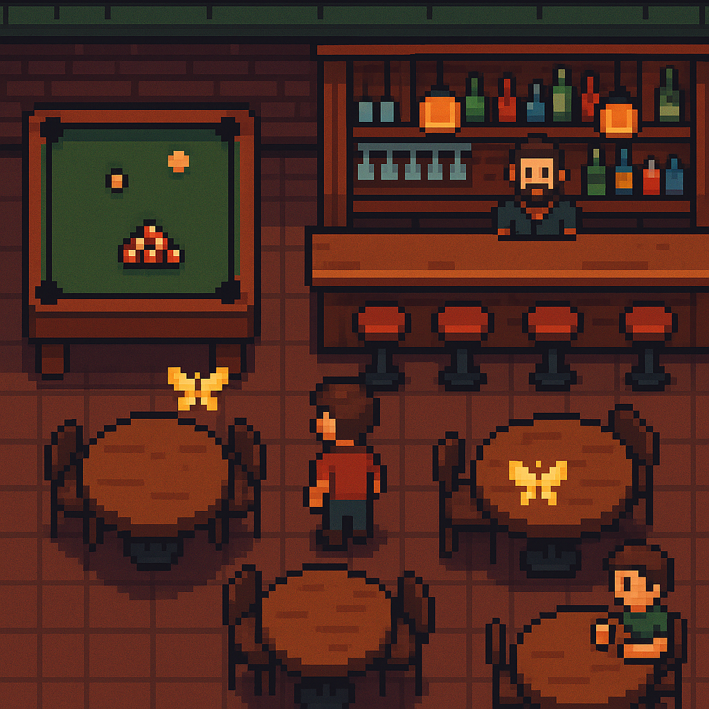 - Butterfly – After riffing with Spruce (my AI partner in crime), the idea snapped into place: there are 10 butterflies in the barroom, and you have to catch them.